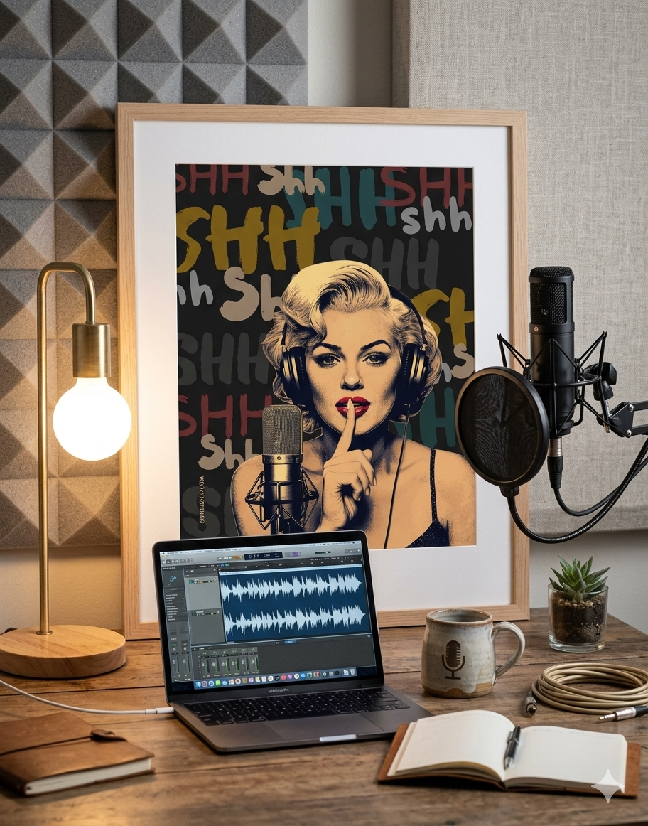 Vintage Marilyn Monroe Recording Poster | "SHH" Pop Art Studio Decor | Silence in the Booth Sign | Premium Matte Vertical Print