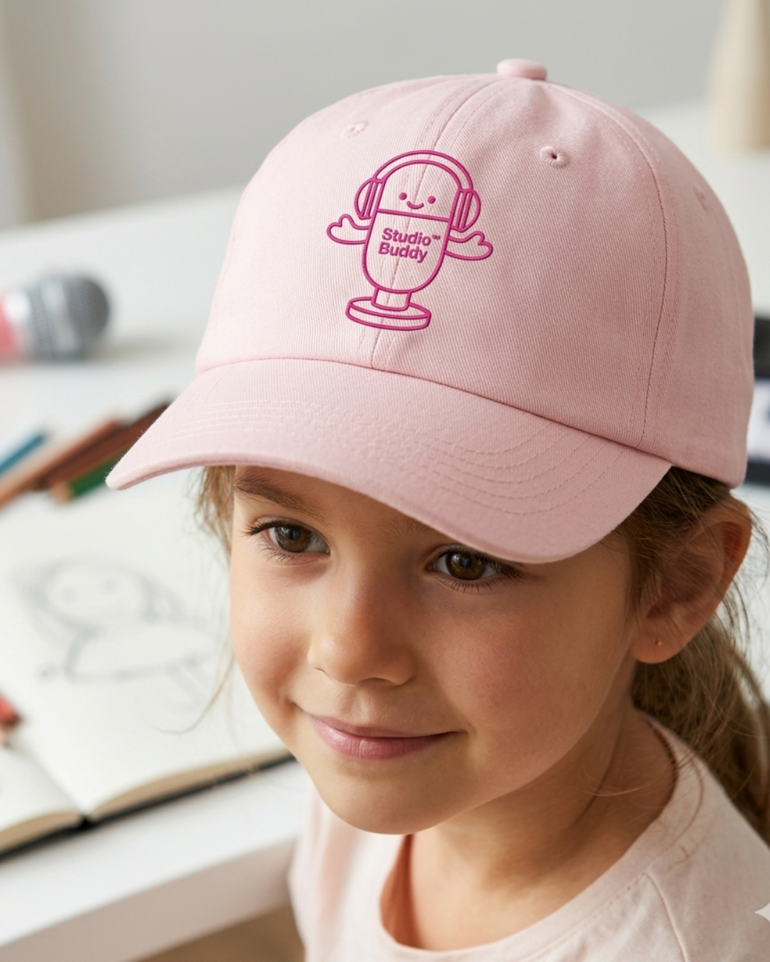 Pink Studio Buddy™ Kids Embroidered Hat | Cute Microphone Youth Baseball Cap